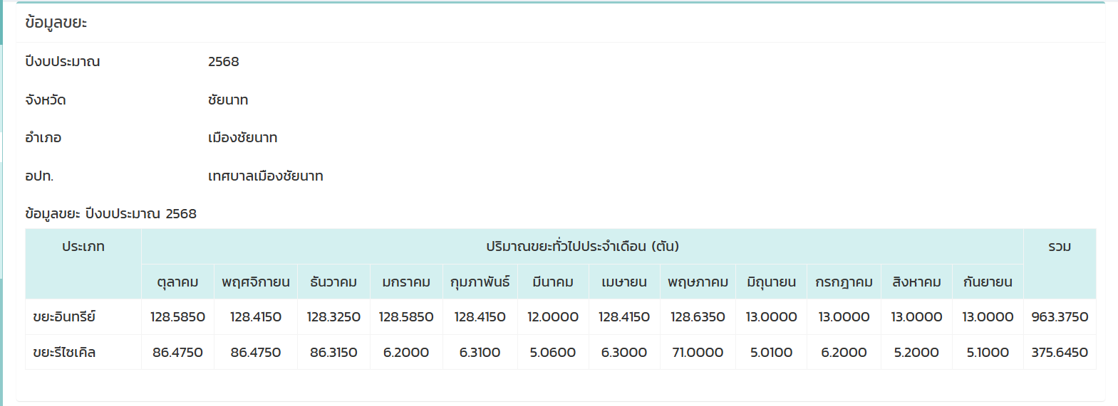 ข้อมูลขยะในเขตเทศบาลเมืองชัยนาท